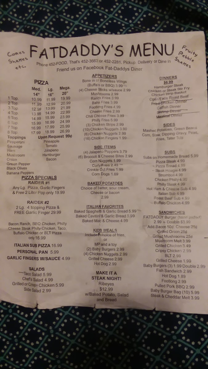 Welcome to Fat Daddys, a culinary gem nestled in the heart of Bevinsville, Kentucky. Located at 20295 KY-122, this local favorite has established itself as a prime destination for comfort food lovers seeking hearty, flavorful meals. With a phone line ready for inquiries and orders at +1 606-452-2281, Fat Daddys is easy to connect with, whether you're planning a visit or craving delivery.